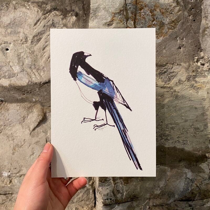 An A5 digital print of an original drawing – the superstitious collector, the Magpie