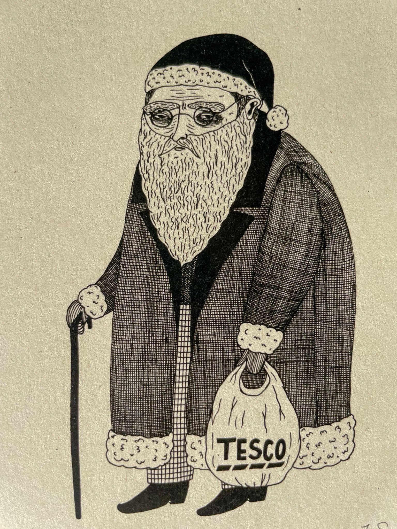 Santa With Tesco Bag Mini Print