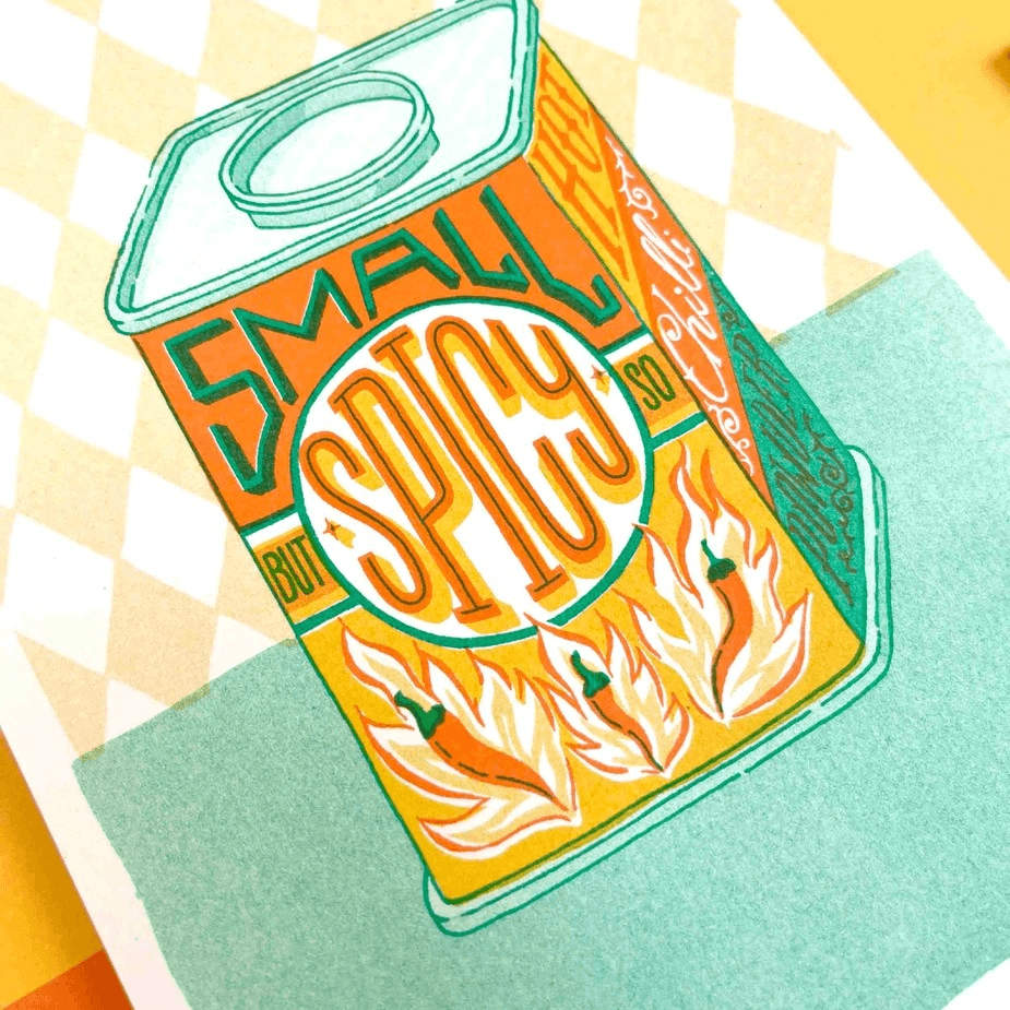 We all know someone small but so Spicy! Size means nothing when it comes to the chilli plant which has been powdered into this cheeky little A5 print is inspired by mid century packaging.