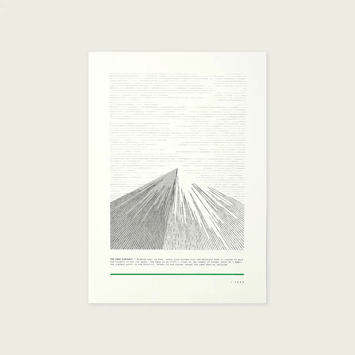 This new series of mountain prints presents the data in its most bare form to illustrate the undulating landscape of four distinct mountain ranges.