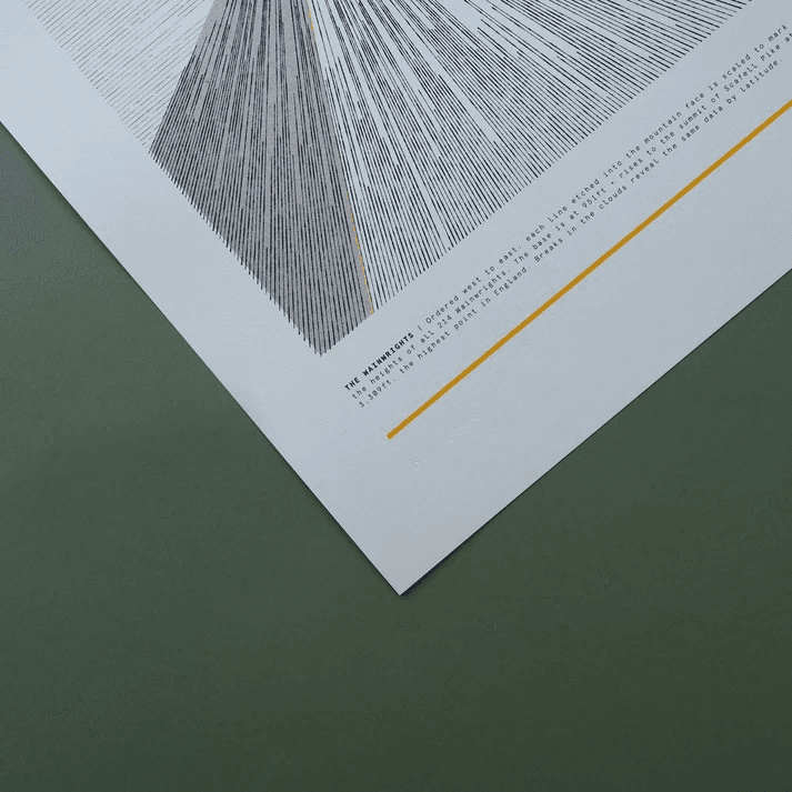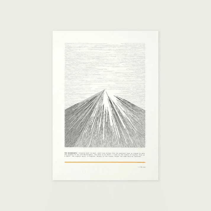 This new series of mountain prints presents the data in its most bare form to illustrate the undulating landscape of four distinct mountain ranges.